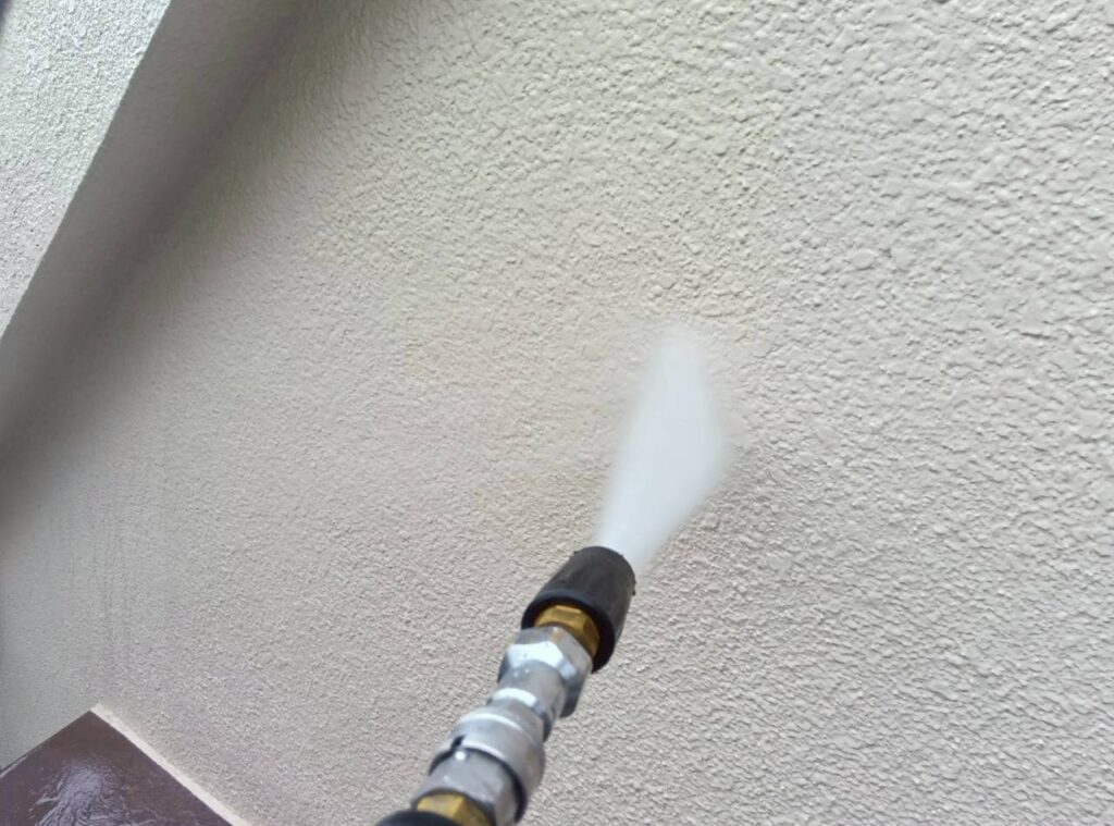 足場組立から高圧洗浄でしっかり汚れを落としていきます。
