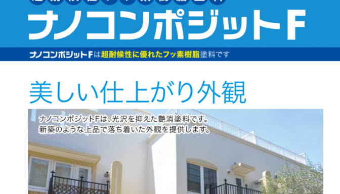 ナノコンポジットFはフッ素塗料に分類され、一般的なシリコン塗料よりも耐久性が高いのが特徴です。