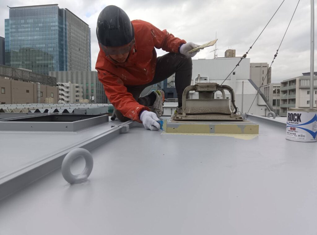 ケレン掛け、脱脂シンナー拭き、錆止め2回塗装、中、上塗りにパワーシリコンMX.N-82の色で塗装しました。